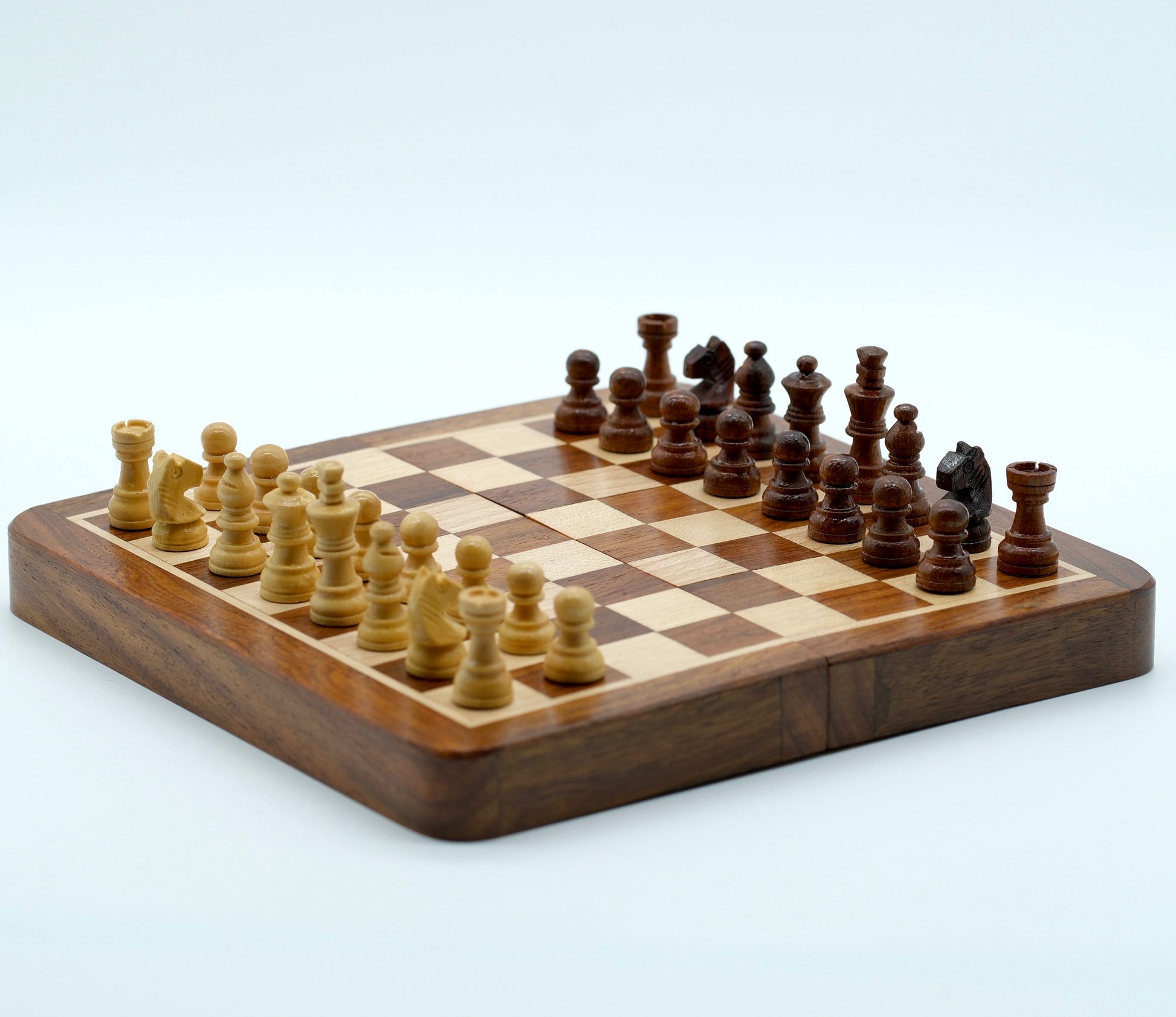 7.5" Handmade Folding Magnetic Travel Chess Set - Sheesham and Maple Wood